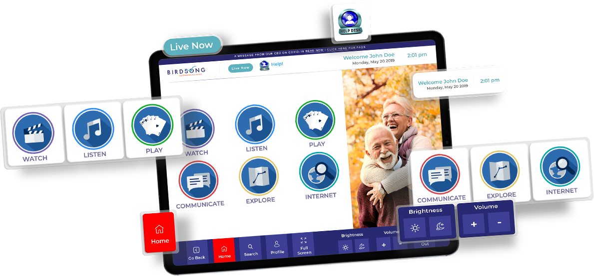 Technology is always advancing – and now you can be part of it. The new Birdsong Tablet introduces aging seniors to technology in a confidence-building, easy-to-use way that eliminates their fear and frustration. The vast content selected especially for older adults keeps them engaged, entertained and connected to family, friends, and caregivers with the touch of a button.